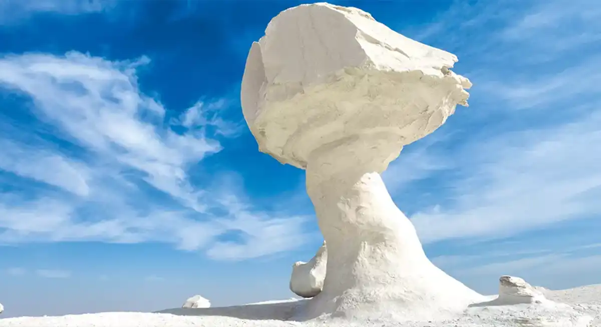 Wie ein geheimnisvoller Skulpturenpark wirkt die Weiße Wüste in Ägypten. Die Kalkstein-Monolithen stammen aus dem Ende der Kreidezeit vor 80 Millionen Jahren, als noch das Mittelmeer die heutige Wüstenfläche bedeckte.